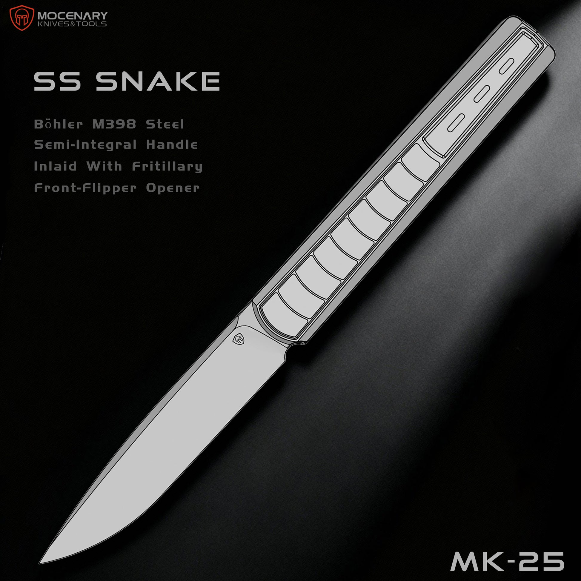 “SS Snake” MK-25 Böhler M398 Steel Semi-Integral Handle Inlaid With Fritillary Front-Flipper Opener Limited Edition In 2025 Delivery December 2025